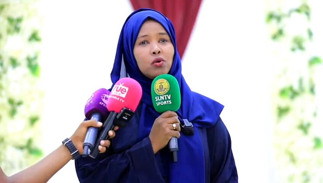 FILE - Somaliland's Deputy Minister of Foreign Affairs, Ambassador Rhoda J. Elmi, speaks during a press conference in Hargeisa.