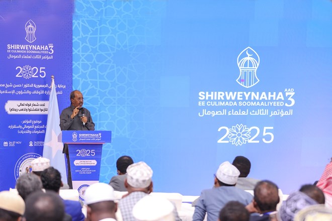 President Hassan Sheikh urged Somali scholars to unite and use their collective influence to guide the public toward unity, social cohesion, and national progress. He noted that a united scholarly community can contribute significantly to building a strong state, a just society, and a nation aligned with global standards.