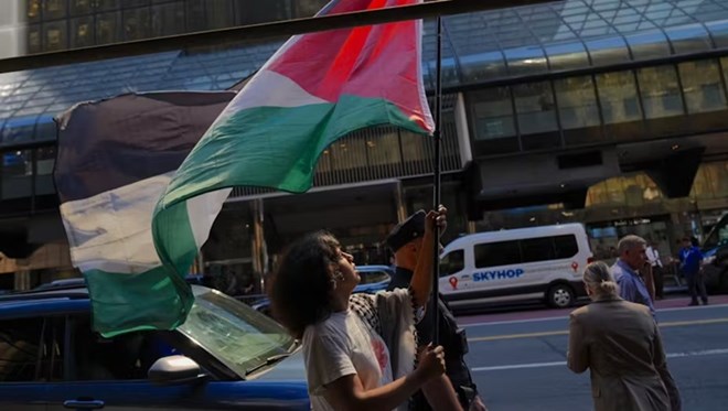 Pro-Palestinian Americans gather in New York at a march to the U.N. on Sept. 18, 2025. Selcuk Acar/Anadolu via Getty Images