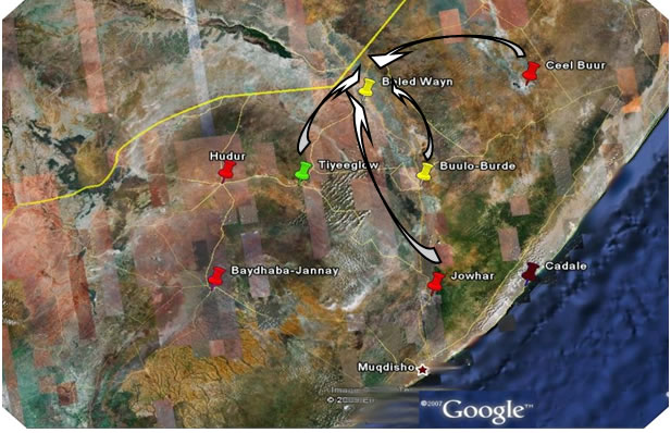 Stop for a minute and imagine this scenario. Moving reinforcement from Huddur, Tiyeglow and Jowhar, Al-Shabab unleashes massive invasion to take Beled Weyne. Again, assume
