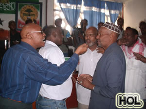 The masses refused to leave and demanded explanation why the government is interfering the parliament. The speaker of the parliament, Abdirahman Irro together with his two deputies came out from the compound of the parliament and addressed the gathering. Four young men from the demonstrators raised him from the ground and put him on their shoulders. The speaker addressed the gathering with calm voice and with dignity and then the masses started to leavethe scene.