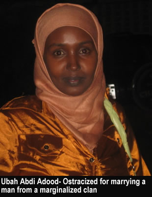 Trying to shed light to these racist-like discriminations, I would ask: What has Madhiban done wrong? Why are they branded as criminals while those who kill and loot are regarded as respectful tribes and clans? Are we not Moslems? Or religion is just a badge that hangs down our long beards? It is a real torture to harass and segregate someone by virtue of his or her tribe. Somalis are people of the same blood yet it seems that their blood can not mix in marriage as in the case of Ubah and her husband. I believe that only through education can the sick Somalis change their present attitudes and behaviors.