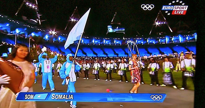 As the well-organized Olympic ceremony in London was underway, various countries presented their icons to bear the flag and walk the stage to showcase their pride and sense of patriotism. I could not deny how happy I felt watching the great Muhammad Ali carry the Olympic flag in the later part of the ceremony, but what moved me most was seeing the Somali team walk the stage with their heads held high and the blue flag with the white star waving as strong as we could imagine it to. I asked myself, is this a foreshadowing of a stronger Somalia to come or is it a new generation that will dignify the flag once more?