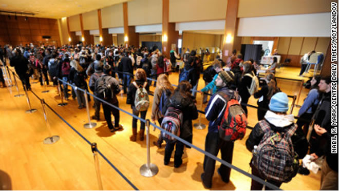 Nawaaxiga gobolada New Jersey iyo Newyork oo ah goobaha ay sida weyn dhaawaca ugu geysatay duufaantii Sandy todobaad ka hor, waxaad arkaysaa in dadweyne farabadan ay isugu soo baxeen goobaha cod bixinta si ay dadku u dhiibtaan codkooda.
