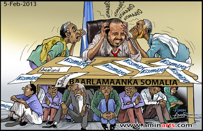 In early 2000s, Somalia’s pirates become a global problem costing billions to the international community to combat piracy and alerting nations to the spillover of Somali problems outside its borders in addition of being a safe-haven for some of the most wanted Al-Qaeda members as was said. In 2005, the CIA turned to Mogadishu’s warlords for help to capture people they suspected of working with/for Al-Qaeda. This plan gave birth to the Alliance for the Restoration of Peace and Counterterrorism, and it backfired by uniting what was later called, the Union of Islamic Courts (the mother of Al-Shabaab). As Western strategists said then, a weak Somali government was inevitable and necessary to combat both what they considered extremists and piracy. Consequently, outside powers started funding more money to Somalia’s cause, changing their policies toward Somalia and forcing local Somali leaders to come to the negotiation table. In 2008, the UN adapted resolution 1816 to combat piracy in and around the Somali coast. Today both piracy and Al-Shabaab extremists are slowly becoming stuff-of-the-past, and soon those countries funding AMISOM mission in Somalia will change their strategies in order to make the Somali government impotent and permanently dependent of their help: more food aid. This will not serve the best interest of Somalia, and that is why Kismaayo problem shouldn’t be viewed as a minor problem but a national security matter that must be solved swiftly even if the action demands ignoring what the constitution says about self-determination regarding to local state establishments.