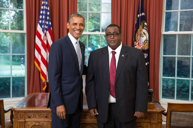 President Obama and the new Somali Ambassador to US Omar Abdirashid A. Sharmarke
