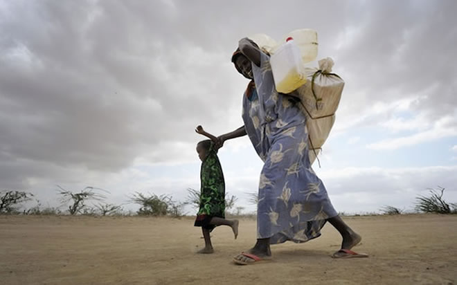 A Somali woman arrives at the Dadaab camp in northeastern Kenya walks with her child to the world's largest refugee settlement. Photo: Paul Jeffrey, ACT Aliance