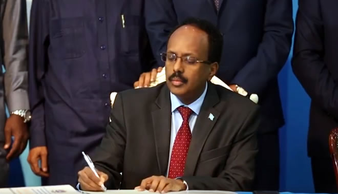 President Mohamed Abdullahi Farmaajo signing Communication Law