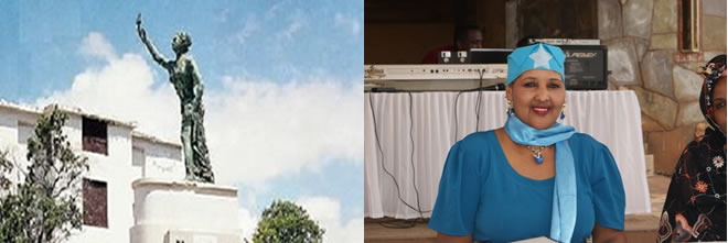 Statue of the famous Hawo Tako (L), slain MP Saado Ali Warsame (R)