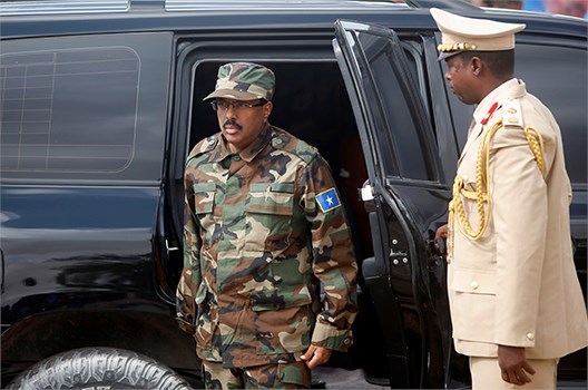 Somali President Mohamed Abdullahi Mohamed arrives for celebrations to mark the 57th anniversary of the Somali National Armed Forces in the capital Mogadishu, April 12, 2017. REUTERS/Feisal Omar
