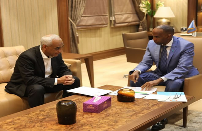 Minister of Humanitarian Affairs and Disaster Management of the Federal Republic of Somalia, HE: Hamza Said Hamza with Prime Minister Hassan Ali Khayre - Photo courtesy: heemaalnews.com