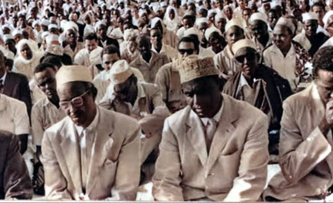 National pride and the love the country - Eid-ul-fitri in 1964 the then president of Somalia Aden Abdulle Osman and his Prime Minister Abdirashid Ali Sharmarke join the residents of Mogadishu for a congregation Eid-ul-fitri prayers. Credit Mohammed Omar Hussein @shiinetown