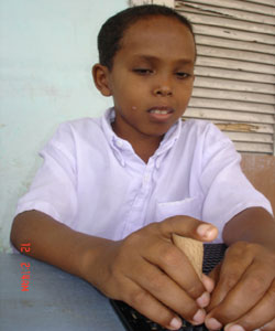 C/xakiin Maxamuud Xaashi waxaa uu ka mid yahay Ardayda wax ka barata dugsigaas, wuxuuna ka waramayay dhibaatada ay bulshad Indhaha qabta kala kulmaan haddii ay yihiin dadka aan indhaha wax ka arki karin, wuxuuna sheegay in xadgudub loo geysto, �mararka qaarkood waxaa dhacda in adigoo dhagax ama god ku dhici raba ay kugu qeyliyaan dadka, iyagoo si xoogan uu leh war haku dhicin godka, taasina ay keento in aad godkii ama dhagaxii ku dhacdo naxdin daraadeed iyadoo ay dhici kartay in aad si tartiib ah uga gudubto�ayuuna yiri C/xakiin oo ka codsaday dadka itaalka leh in ay dadka naafada ah u naxariistaan.
