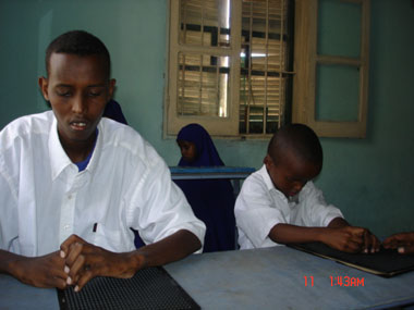 Intii aan ku guda jiray xog-uruurintii aan u tegay Dugsigaas ayaan soo arkay Caruur wiilal iyo Gabdho isugu jiray oo siyaabo kala duwan u indho beelay, kuwaasi oo intey qoreen farta Praille-ka, kadibna aqriyay iyadoo ay dul taagan yihiin Macalimiintii wax bareysay oo qudhood aan indho lahayn balse wax soo bartay ilaa heer Jaamacadeed.