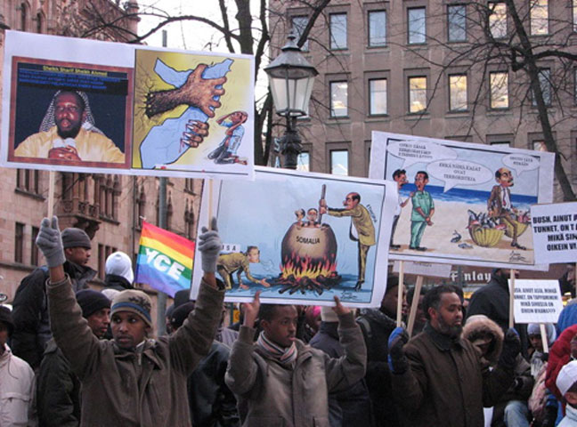 Sabti, January 13, 2007(HOL): Bannaabax ballaaran oo looga soo horjeeday joogitaanka ciidamada Itoobiya ee dalka Soomaaliya iyo weerarada gardarada ah ee ay ciidamada mareykanka iyo kuwa Itoobiya ku hayaan koofurta Soomaaliya ayaa maalintii jimcaha aheyd ee12. Jan 2007 ka dhacay magaalada Helsinki ee dalka Finland. Bannaabaxaas oo ay kasoo qeyb qaleen dadweyne aad u fara badan oo isugu jiray haweenka, culimada, aqoonyahannada, waxgaradka, cuqaasha, dhalinyarada iyo carruurta soomaaliyeed ee ku nool wadanka Finland kuwaasoo ka kala yimid gobolada dalka.