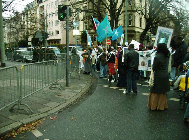 Dadkani ayaa waxay ku hor banaanbaxeen Safaaradaha Mareykanka iyo Itoobiya ee dalka Jarmalka , iyagoo ku luuqeynayay Heesihii la qaadi jiray xiligii uu socday dagaalkii dhexmaray Soomaaliya iyo Itoobiya.