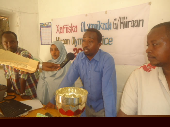 Sabti, Feberaayo, 23, 2013 (HOL) – Kadib dhaq dhaqaaq Isboorti oo si xowli ah uga socday bilihii ugu danbeeyay magaalada Baladweyne ee xarunta gobollka Hiiraan ayaa hadda waxaa muuqata in guddiga Olanbikada Soomaaliya uu u soo jeestay sidii uu loo taageeri lahaa howlaha Isboorti ee sida wanaagsan uga soconaya gobollka.