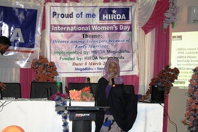 Sidoo kale, waxaa goobta ka hadlay xiriiriyaha haweenka ee HIRDA, Caasho Axmed Cali oo sheegtay in ururkooda la aasaasay 13-kii Febraayo 1998-dii, ujeeddooyinka loo aasaasayna ay ka mid ahayd wax u qabashada bulshada Soomaaliyeed ee dhibaateysan gaar ahaan haweenka iyo dhallaanka.