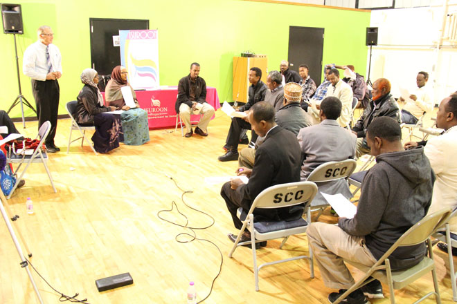 Jimco, Oktoobar 18, 2013 (HOL) — Dood-cilmiyeed ku saabsanaa sida ay ula xisaabtami karaan Jaaliyadda Soomaaliyeed ee gobolka Minneapolis xubnaha ay doortaan ayna uga qeyb-gali karaan doorashooyinka, gor-gortana ay ula geli karaan musharaxiinta u kala tartameysa cododkooda ayaa maanta ka dhacay magaaladda Minneapolis ee gobolka Minnesota.
