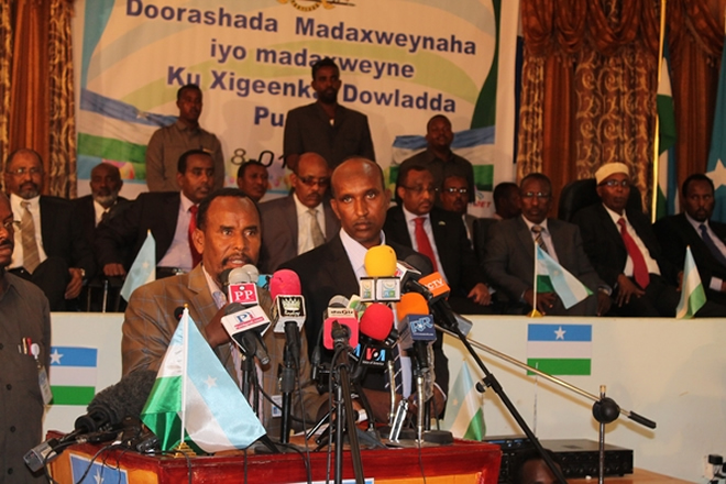 Arbaco, Janaayo 08, 2014 (HOL) — Magaalada Garoowe ee xarunta maamulka Puntland ayaa waxaa maanta ka dhacday doorashada madaxweynaha iyo madaxweyne ku xigeenka Puntland, xilalkaas oo ay kusoo kala baxeen madaxweynaha cusub ee Puntland, C/weli Maxamed Cali Gaas iyo madaxweyne ku xigeenka cusub ee Puntland, C/xakiin C/llaahi Xaaji Cumar (Camey).