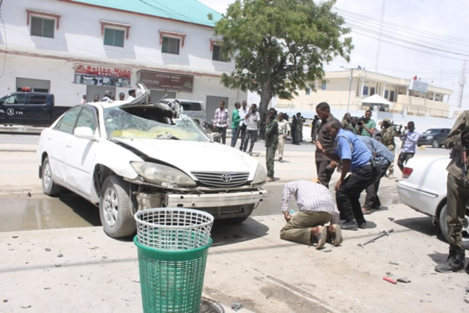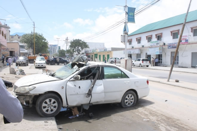 “Baabuurka waxaa la dhigay hoteel Golden hortiisa, si lama filaan ah ayuu u qarxay, waxaa arkay dhimashada saddex ruux, shan kalena way ku dhaawacmeen,” ayuu u sheegay HOL goobjooge ku sugnaa meel ku dhow halka qaraxu ka dhacay.