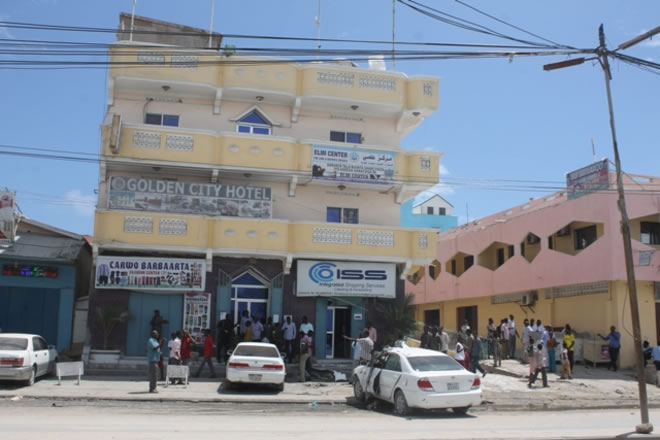 Gaariga ayaa ku qarxay afaafka hore hoteel Golden ku yaalla isgoyska Shaqaalaha oo kasoo horjeeda guriga Shaqaalaha oo xarun u ah waaxda socdaalka iyo jinsiyadaha dowladda Soomaaliya.