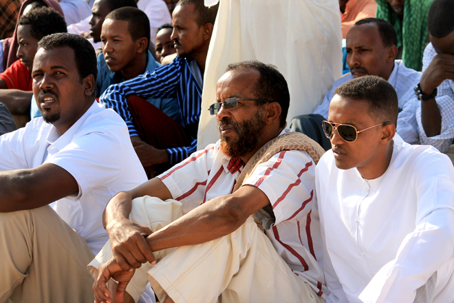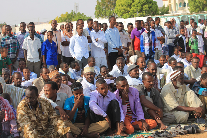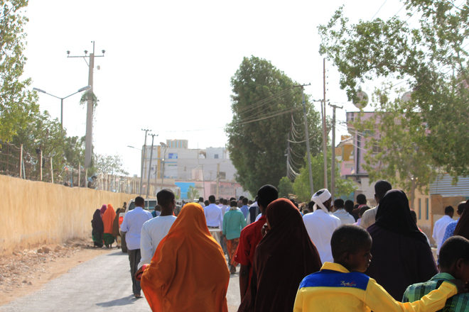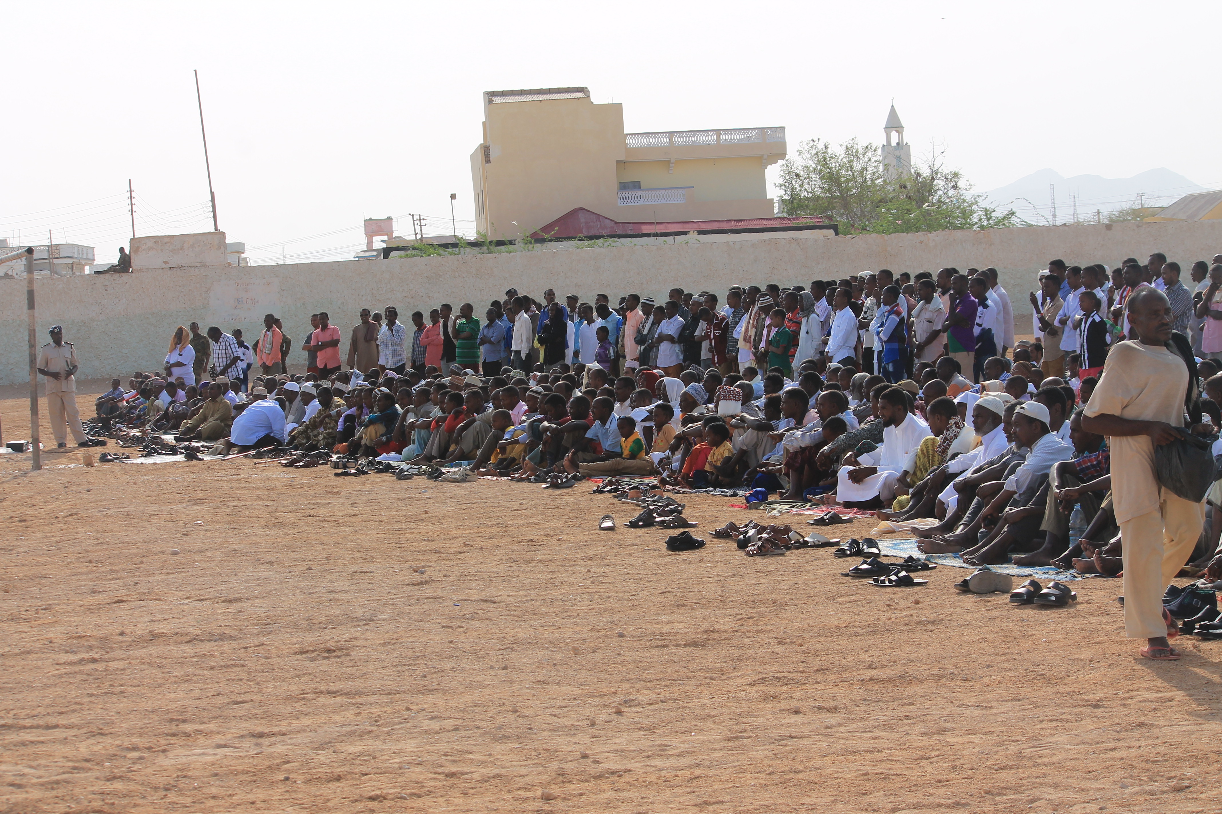 Kumanaan dadweyne ah ayaa isugu soo baxay jidadka, waxaana salaadda Ciidka lagu oogey dhamaan masaajidda xaafadaha iyo garoonka kubadda cagta ee degmada, halkaas oo ay culimaa'uddiinka iyo maamulkuba bulshada kula hadleen.