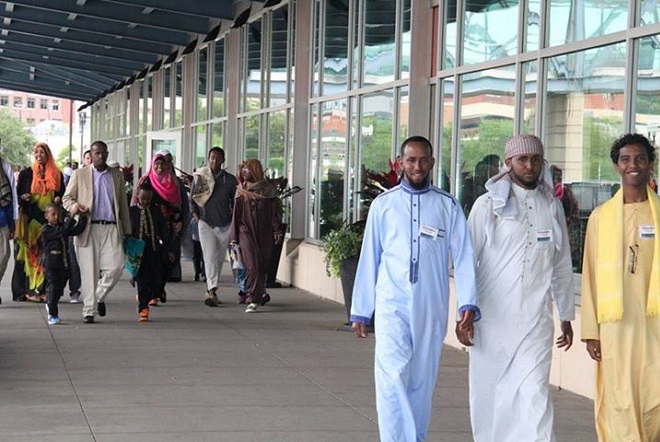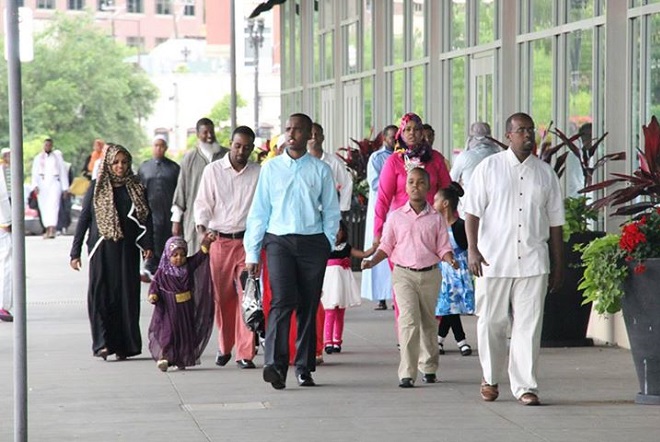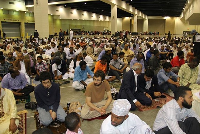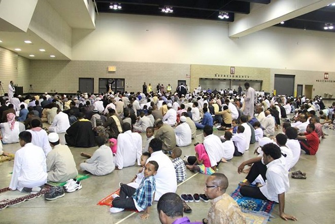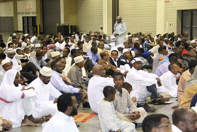 Isniin, July 28, 2014 (HOL) — Xarunta Excel Energy Center ee magaalada St Paul ayaa waxaa isagu soo baxay boqollaal ruux si ay ugu gudaan salaadda ciidda. Abaarahii 7:30-kii subaxnimo ee xilliga Mareykanka ayaa waxaa goobta soo galayay dad raxan-raxan u socda kuwaasoo qaarkood takbiirta kor u qaadayay, taasoo lagana maqlayay jidka hareerahiisa.