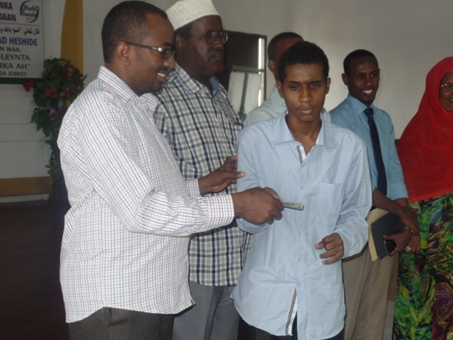 Ustaad Caagane, ayaa madasha ku guddoonsiiyay lacag Abaalmarin ah Saddexdii Arday ee Araga la’aa ee Kaalmaha ka galay Tartanka Qur’aan Akhriska Dadka Baahiya gaarka ah qaba ee Idaacada Risaala.