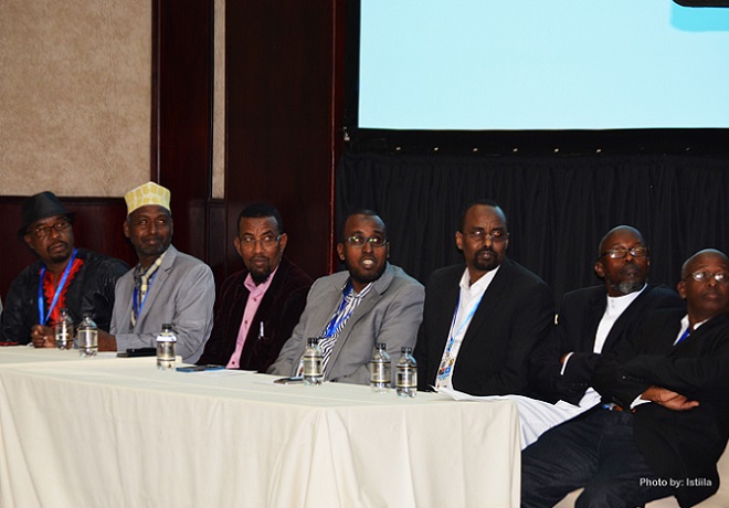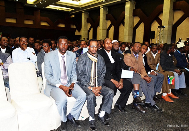 Xasan Sheekh oo ay wehliyeen agaasimaha shaqaalaha madaxtooyada Somalia, Sii-hayaha Danjiraha Soomaaliya ee Koonfur Afrika iyo mas'uuliyiin kale oo ka tirsan Wasaaradda Arrimaha Dibadda Somalia ayaa kulanka ku dhageystay Hadallo kala duwan oo ay soo jeediyeen qaar ka mid ah ganacsatadii, aqoonyahankii, culumadii, haweenkii iyo dhallinyaradii kasoo Qayb-galay kulankaan oo ka dhacday Galagher State Hall oo ku yaalla Magaalada Johannesburg.