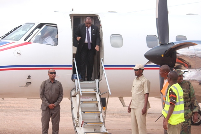 Qaar kamid ah golaha wasiirrada Puntland, maamulka gobolka, kan Gaalkacyo iyo shacab fara badan ayaa madaxweynaha ku soo dhaweeyay garoonka diyaaradaha ,isaga oo inta ka dib war kooban siiyay wariyayaasha.