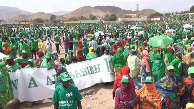 Isniin, Abriil 04, 2016 (HOL) — Musharraxa Madaxweynaha ee Xisbiga UMP, Ismaaciil Cumar Geelle, ahna madaxweynaha Jabuuti ayaa maanta kusoo gunaanaday degmada Cali-sabiix ololahiisa doorshada ee gobollada waddanka Jabuuti.