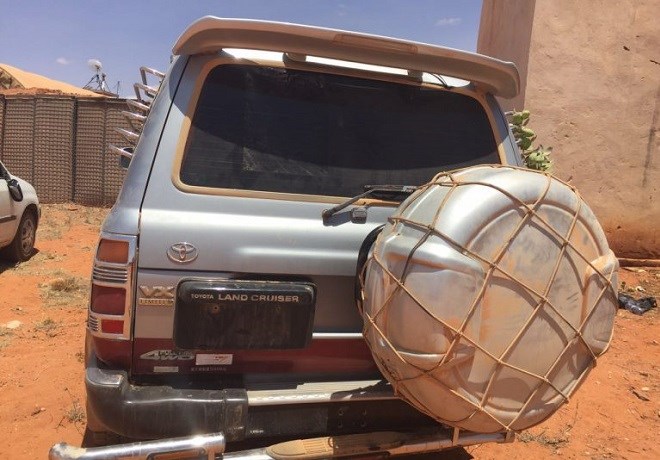 Gaarigan oo ah nooca Soomaalidu u taqaanno Land Cruiser, ayaa lahaa labo taargo oo Somalia iyo Puntland ah, kuwaasoo sida saraakiisha ciidamadu ay sheegen loo adeegsan jiray dilalka Gaalkacyo ay ka gaysan jireen Ururka Al-shabaab.