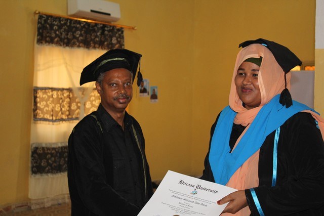 Prof. Ibraahim Dhaqane oo ka mid ah Maamulka sare ee Jaamacadda ayaa ku Ammaanay Ardayda dhameysatay Waxbarashada oo noqonaya Dufcadii labaad, dadaalka dheeriga ah oo ay muujiyeen si ay u soo gaaraan maanta oo kale.