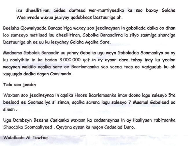 Sabti, Janaayo 30, 2016 (HOL) — Kulan ay Golayaasha Beelaha Banaadiriga ku yeesheen Muqdisho Jimcihii shalay oo taariikhdu ahayd 29-kii Jannaayo, ayaa Waxay kasoo saareen Bayaan ay ku taageereen go’aankii kasoo baxay baarlamaanka Somalia kasoo ku aaddanaa doorashada dalka ka dhacaysa Sannadkan 2016, ayna kasoo hor-jeedaan war-murtiyeedkii kasoo baxay Golaha Wasiirrada 28-kii bishan Jannaayo.