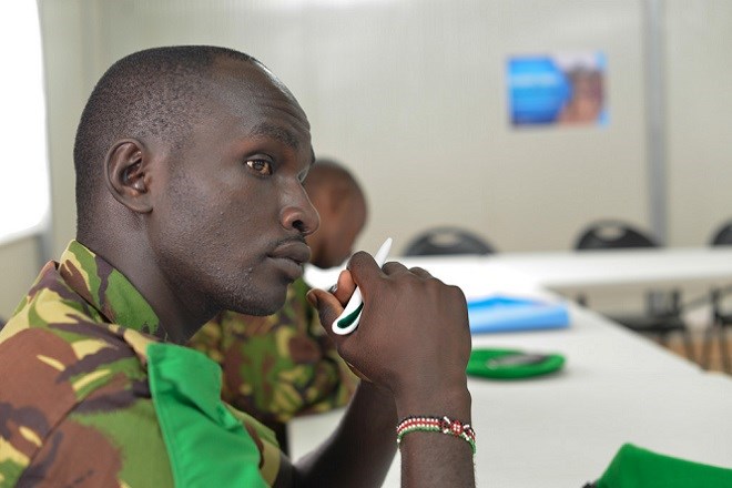 Ku-simaha Madaxa Shaqaalaha AMISOM, Col. Shadrack Othieno Mutacho oo khudbad ka jeediyay Xafladdii Xiritaanka Tababarkan oo muddo saddex casho ah u socday Saraakiisha millateriga AMISOM - ayaa sheegay inay Muhiim tahay in la ilaaliyo Xuquuqda Aadanaha inta lagu jiro hawl-gallada ciidan.