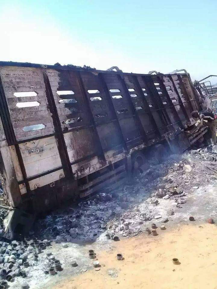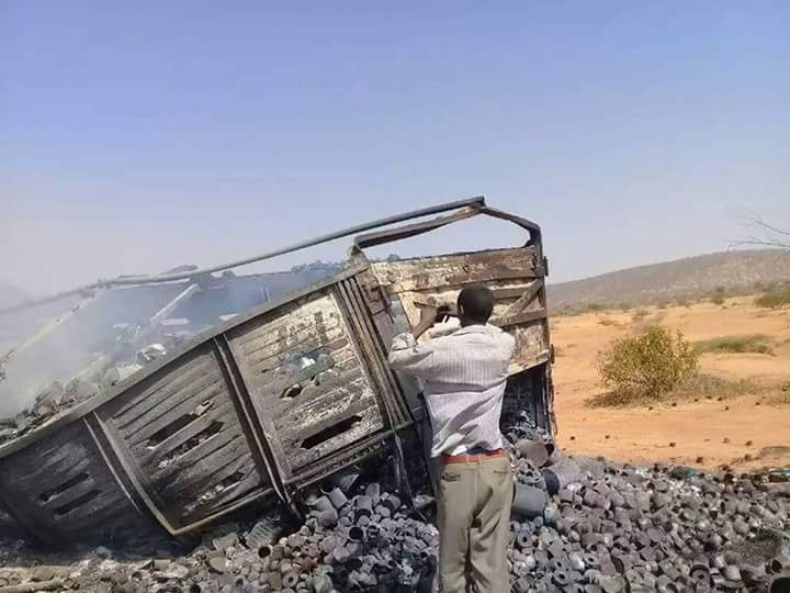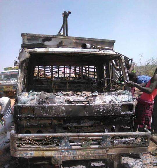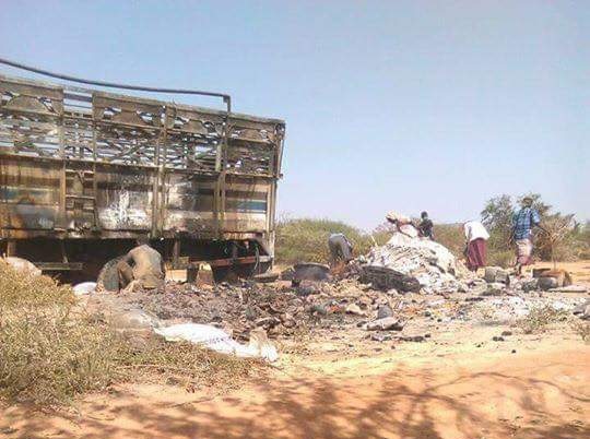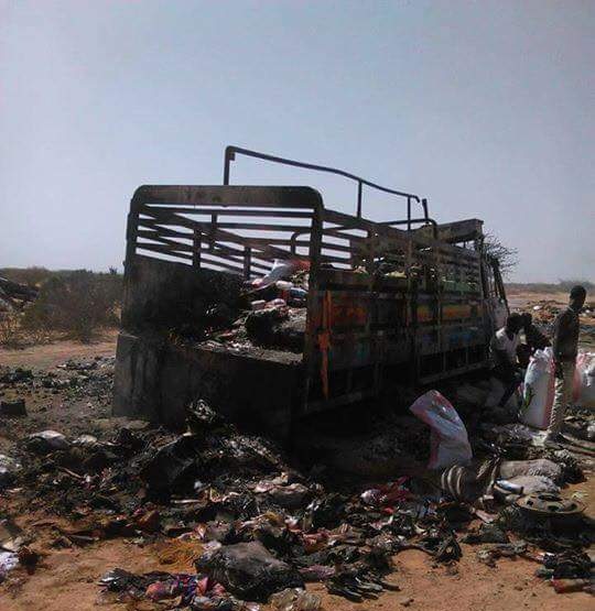 Hadaba Sawirro laga soo qaaday gadiidka ayaa muujinaya sida ay u basbeelleen gaadiidka la gubay iyo dhamaanba wixii hanti ahaa ee saarnaa dushooda.
