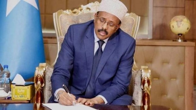 Khamiis, December, 24, 2020 (HOL) -Madaxweynaha Jamhuuriyadda Federaalka Soomaaliya Mudane Maxamed Cabdullaahi Farmaajo ayaa saxiixay Xeer Madaxweyne oo dib u dhigaya ansixinta Wax-ka-beddelka Dastuurka Kumeel Gaarka ah maadaama la galay xilligii doorashooyinka oo ay sii dhammaaneyso muddada xilhaynta Barlamaanka 10aad, ayna bilaabanayso muddo Xileedka Barlamaanka 11aad ee Jamhuuriyadda Federaalka Soomaaliya.