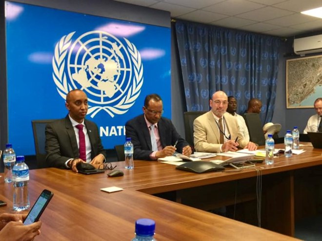 Talaado, Janaayo, 28, 2020 (HOL)-Wasiirka Wasaaradda Caddaaladda iyo Arrimaha Garsoorka ee XFS Mudane, Avv. Xasan Xuseen Xaaji iyo Hanti-Dhowraha Qaranka Maxamed Cali Afgooye iyo howlwadeenno ka kala socday Wasaaradda Caddaaladda iyo Xafiiska Handhowrka ayaa kulan la qaaatay hay’adaha UNDP, UNODC, EUCAP iyo qaar ka mid deeq-bixiyayaasha magaalada Mogadisho maanta.