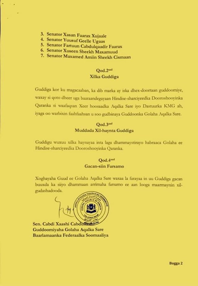2. In uu tilmaamo habraaca Doorashada Madaxweynaha Jamhuuriyadda Federaalka Soomaaliya si waafaqsan Dastuurka Federaalka;