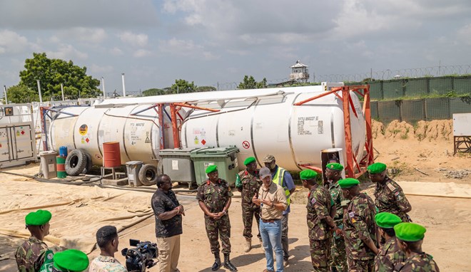Ku-xigeenka Madaxa Adeegga Bixinta ee UNSOS, Michael Dorn, iyo Taliye ku-xigeenka Ciidanka ATMIS ee dhinaca Taageerada iyo Saadka, Maj Gen Peter Muteti, ayaa ku sugnaa Dhoobley, oo qayb ka ah booqasho joogto ah oo ay ku tagayaan qaybaha kala duwan ee ATMIS, si ay u qiimeeyaan xaaladda dhulka.