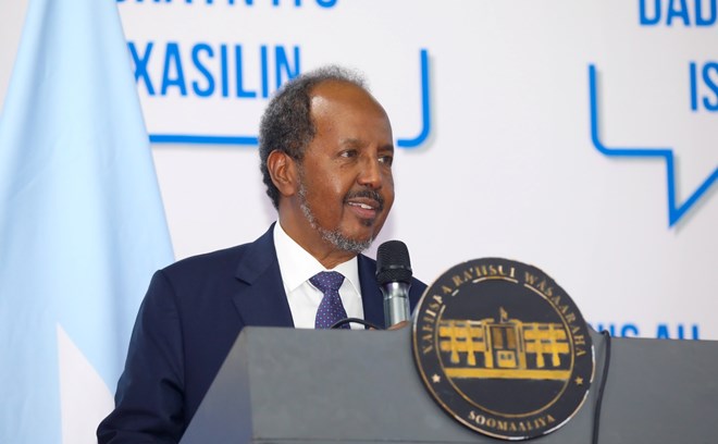 " Maalin walba waxaad idaacadaha iyo social mediyaha ka maqashaan kuwa taagan oo dhahaya baddii waala la xaalufiyay. Caawa oo aan intaan ku hadlayno kun markab ka badan ayaa ku jira baddeena, oo kalluunkeennii daldalanaya oo mid kamida oo wax naga siinaya aanu jirin," ayuu yiri madaxweyne Xasan Sheikh.