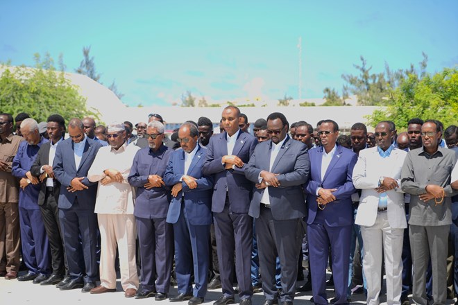 newsinsideMadaxweynaha dowladda Fedaraalka Soomaaliya Xasan Sheekh Maxamuud ayaa Salaadda Janaasada ku Tukaday Alle ha u naxariistee Marxuum Cismaan Maxamed Jeelle oo xilal kala duwan ka soo qabtay dowladdii dhexe ee dalka uu madaxweynaha ka ahaa Jaalle Maxamed Siyaad Barre.