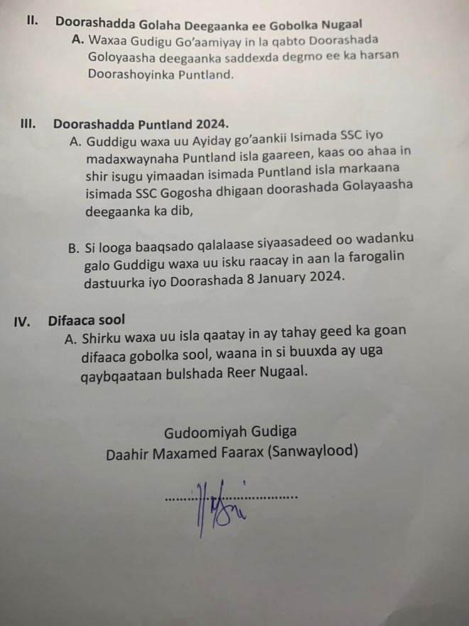 Sabti, May 27, 2023 (HOL) - Guddi loo xilsaaray kasoo go'aan gaarista muranka ka taagan doorashada golaha degaanka degmooyinka Garowe, Dangorayo iyo Godob Jiraan, ayaa caawa soo saaray go'aan rasmi ah.