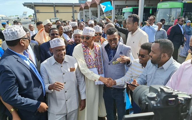 Xubnahaan ka tirsan Isimada dhaqanka SSC ayaa waxaa garoonka diyaaradaha Aadan Cadde kusoo dhaweeyay masuuliyiin ka tirsan dowladda Fedaraalka Soomaaliya oo ay ka mid ahayeen Wasiirka arrimaha gudaha Soomaaliya Axmed Macalin Fiqi, gudoomiye ku xigeenka Golaha Aqalka Sare Cabdilahi Timocade, Xildhibaano ka tirsan labada gole iyo qaar ka mid ah qaybaha kala duwan ee bulshada.
