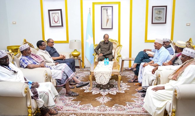 newsinsideMadaxweyne Xasan Sheikh Maxamuud ayaa ka dhageystay Isimada Dhaqanka aragtidooda ku aaddan xal u helidda dhibaatada ka taagan Gobolka Sool, isagoo xoogga saarayey sidii loo ilaalin lahaa nabadda, wada-noolaanshaha bulsho iyo xasilloonida deegaannaadaas.