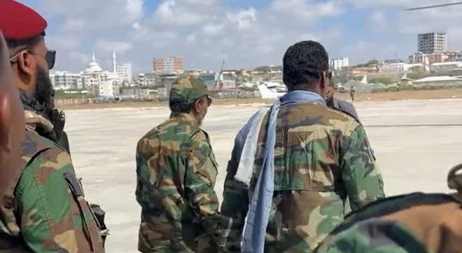 Isniin, Apriil, 1, 2024 (HOL) - Madaxweyne Xasan Sheikh Maxamuud oo ku lebisan tuutaha ciidanka xoogga dalka, ayaa safar aan la shaacin ugu ambo baxay degmada Xarardheere ee gobolka Mudug.