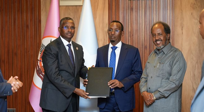 Madaxweyne Xasan Sheekh Maxamuud ayaa sidoo kale kula dardaarmay Agaasimaha cusub ee hay'adda Nabadsugida iyo Sirdoonka Qaranka Soomaaliyeed inuu ka soo dhalaalo waajibaadka adag ee horyaala.