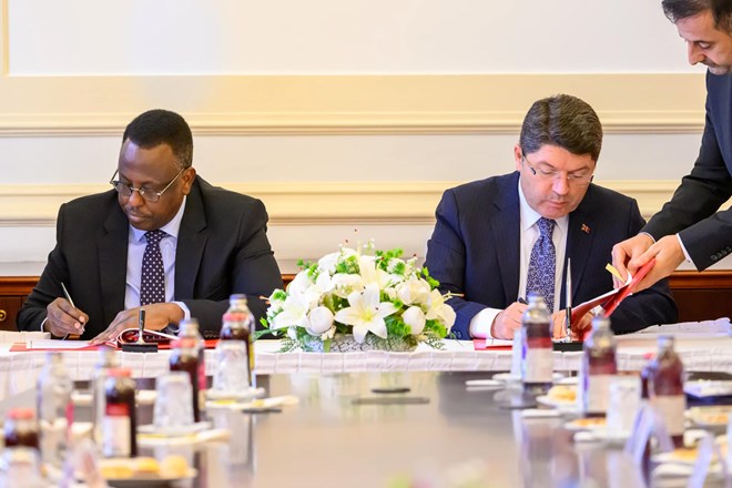 Jimco, December, 13, 2024 (HOL) - Wasiirka Cadaaladda iyo arrimaha Dastuurka ee Xukuumaada Fedaraalka Soomaaliya Xasan Macallin ayaa dhigiisa dalka Turkiga Yılmaz TUNÇ ku kala saxiixday magaalada Ankara ee dalka Turkiga heshiiska wareejinta Maxaabiista Xukuman.