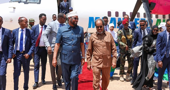 Arbaco, February, 14, 2024 (HOL) - Madaxweynaha dowladda Fedaraalka Soomaaliya Xasan Sheekh Maxamuud iyo wafdi uu hoggaaminaayo ayaa maanta gaaray magaalada Kismaayo ee xarunta gobolka Jubbada Hoose.